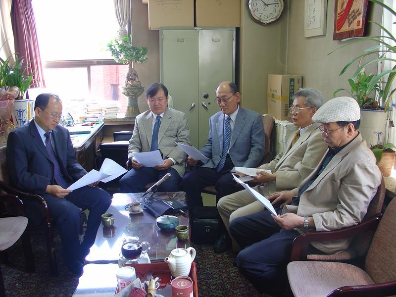 '월간문학' 2005년 6월호의 권두좌담 '21세기 희곡문학의 존재 양식을 찾아서'-- 왼쪽부터 김대현(한국희곡작가협회 이사장) 곽노흥(희곡작가) 김흥우(희곡작가, 동국대 교수) 김영무(희곡작가, 문협 희곡분과 회장) 노경식(극작가, 서평연극제 추진위원장) ~