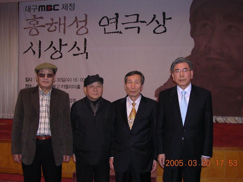 대구에서 열린 제1회 '홍해성 연극상' 시상식장에서 영예의 수상자 김삼일(연출가) 교수와 함께~