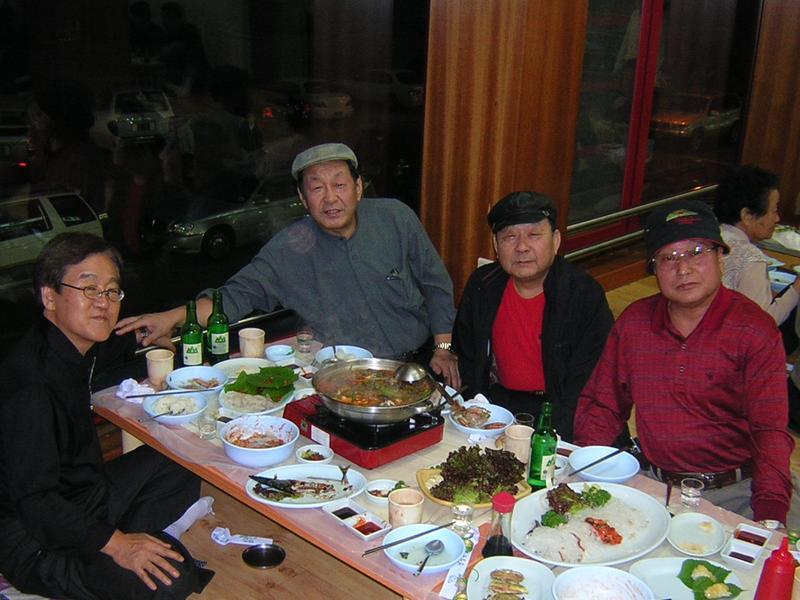왼쪽부터 윤대성 노경식 권오일 이태주 등이 속초의 장사동 바닷가 횟집에서----