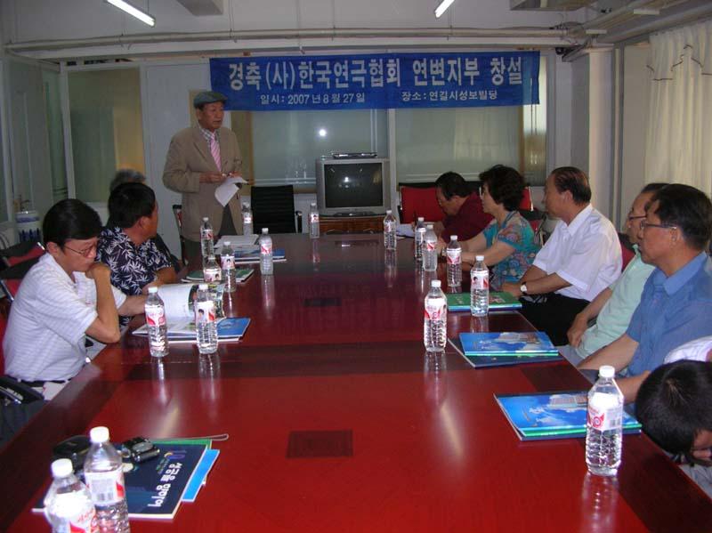 '연변지부' 창설식 사회를 보고 있는 노경식 극작가.