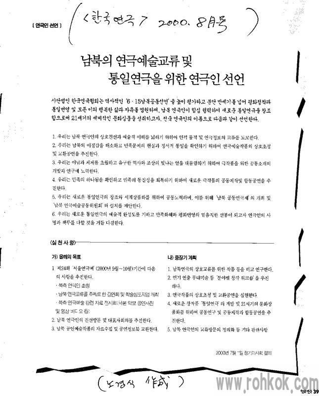 통일연극을 위한 '연극인 선언...